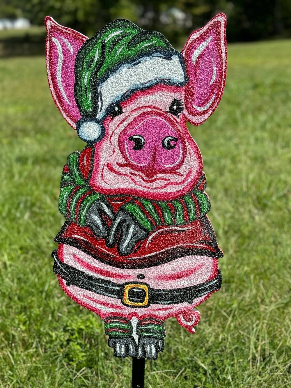 Outdoor Christmas Pig Lawn Sign | Funny Holiday Gift for Women | Farmhouse Yard Decor | Cute Lawn Ornament for New Homeowners