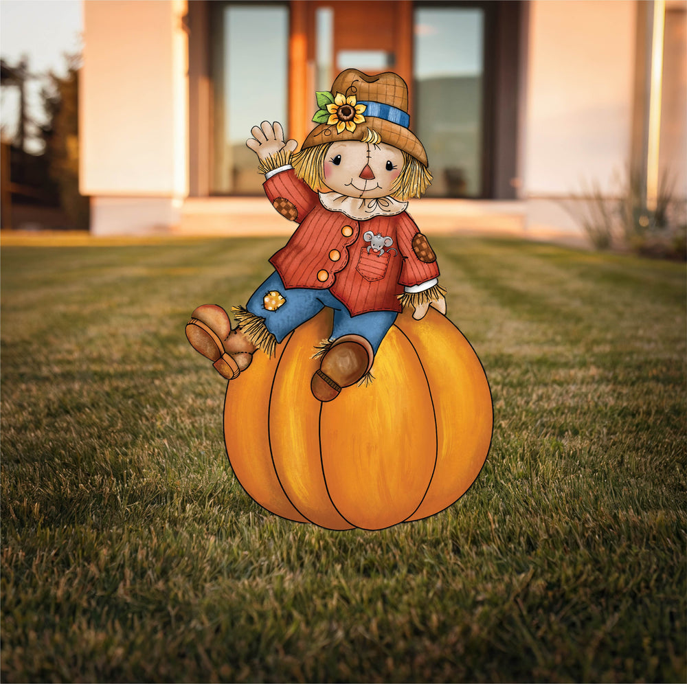 Scarecrow Sitting on Pumpkin Fall Yard Art