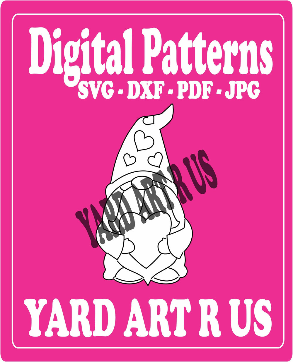 Boy Gnome Holds Heart Valentines Digital Template - SVG - DXF - PDF - JPG Files
