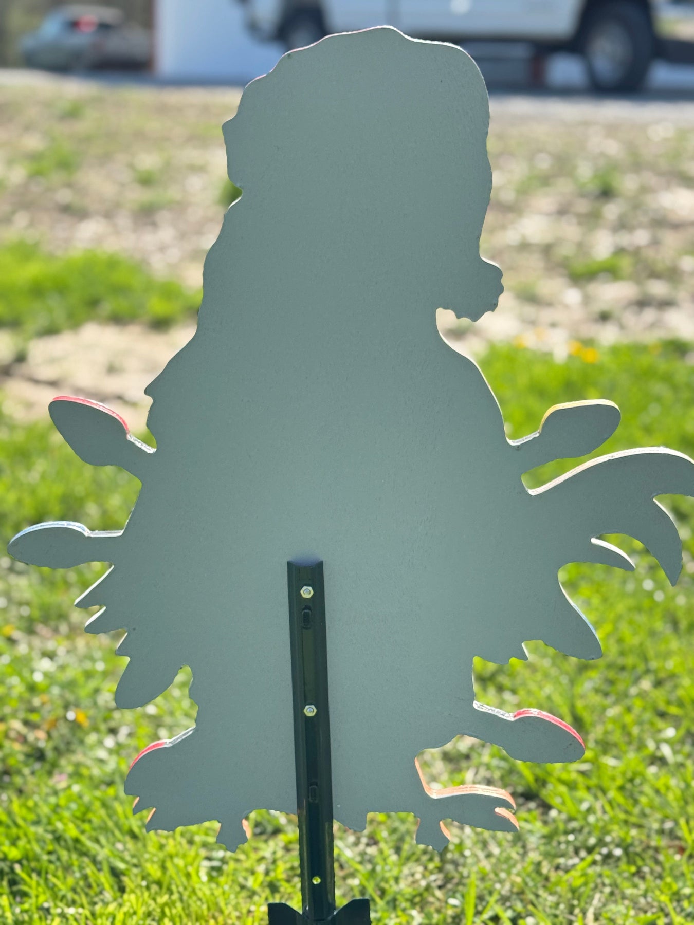 •The back of the yard sign is painted a solid color.