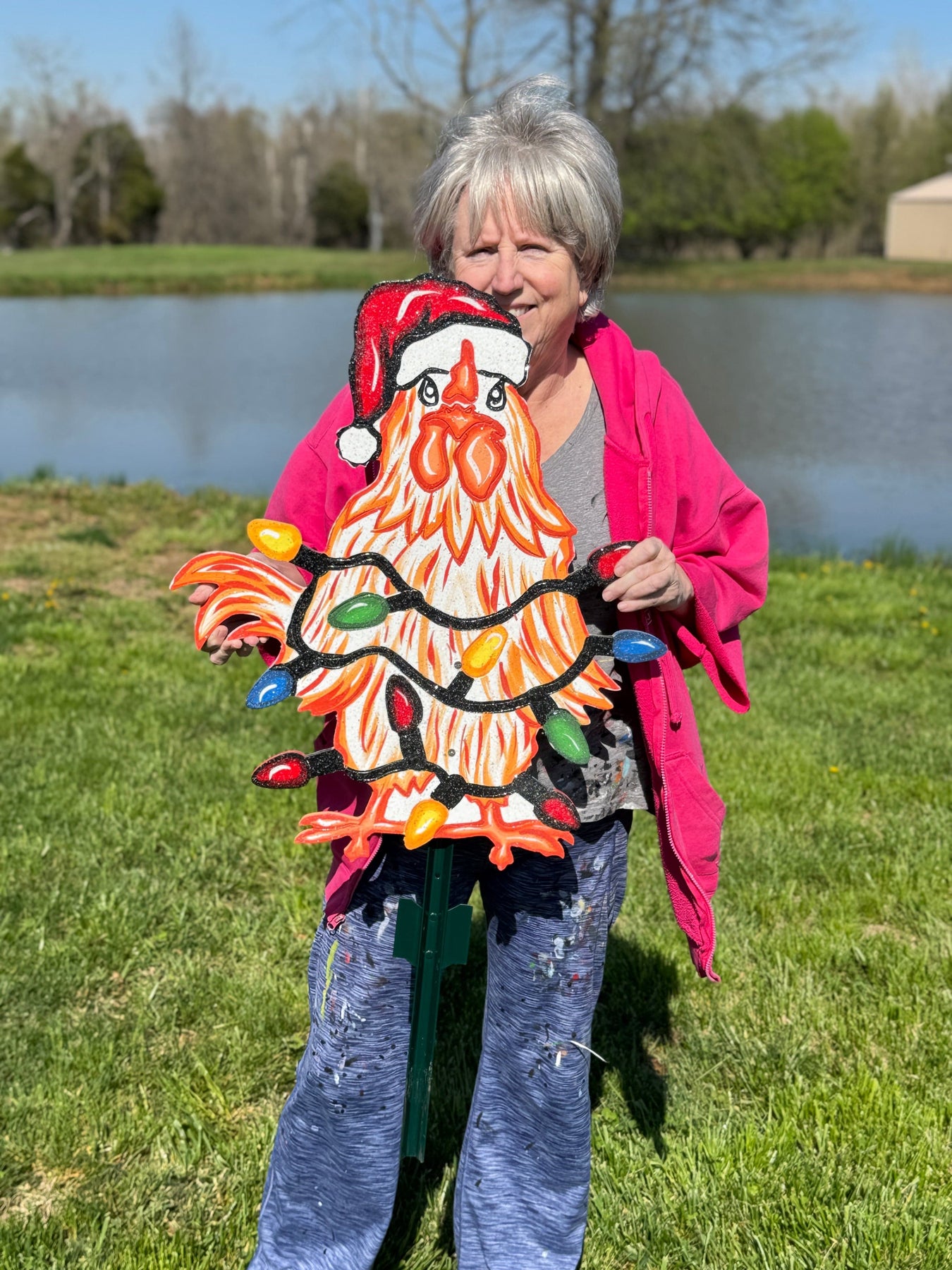 Funny Christmas Chicken Outdoor Decor | Chicken Yard Sign with Lights | Holiday Gift for Women | Farm Christmas Yard Decoration
