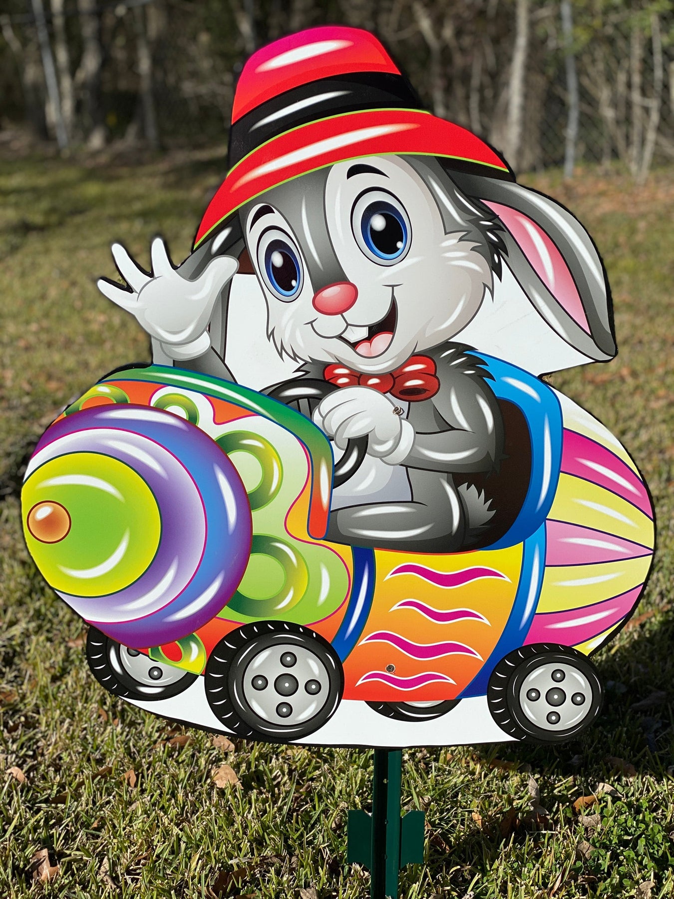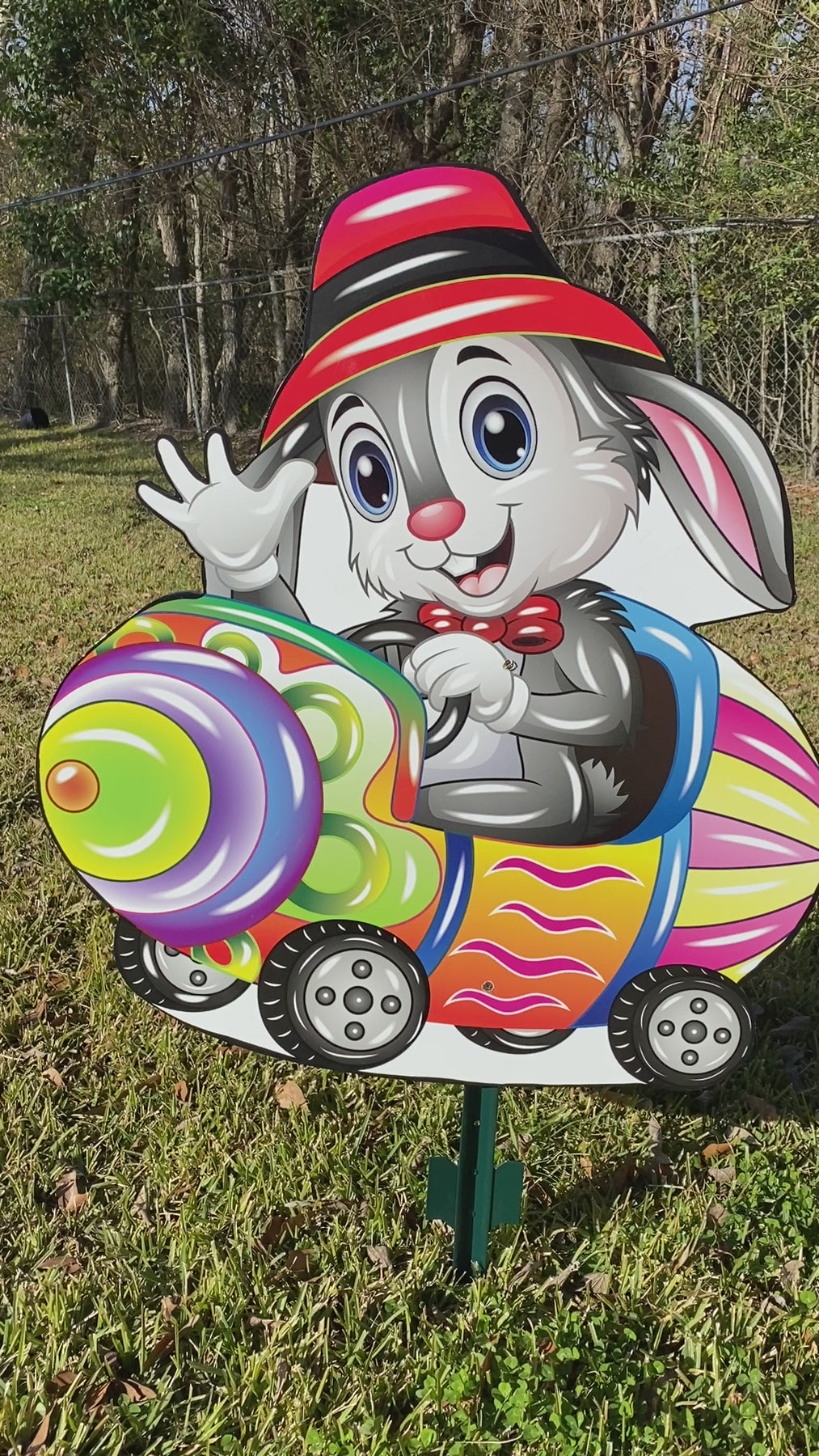 Easter Bunny Driving Easter Egg Car and Floppy Ear Easter bunny yard signs