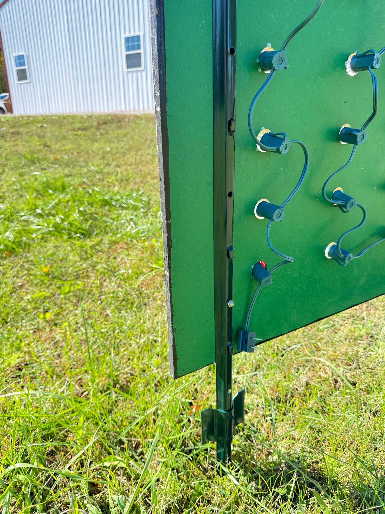 •Arrives to you with green stakes which you will install on the back using pre drilled holes with hardware provided.
