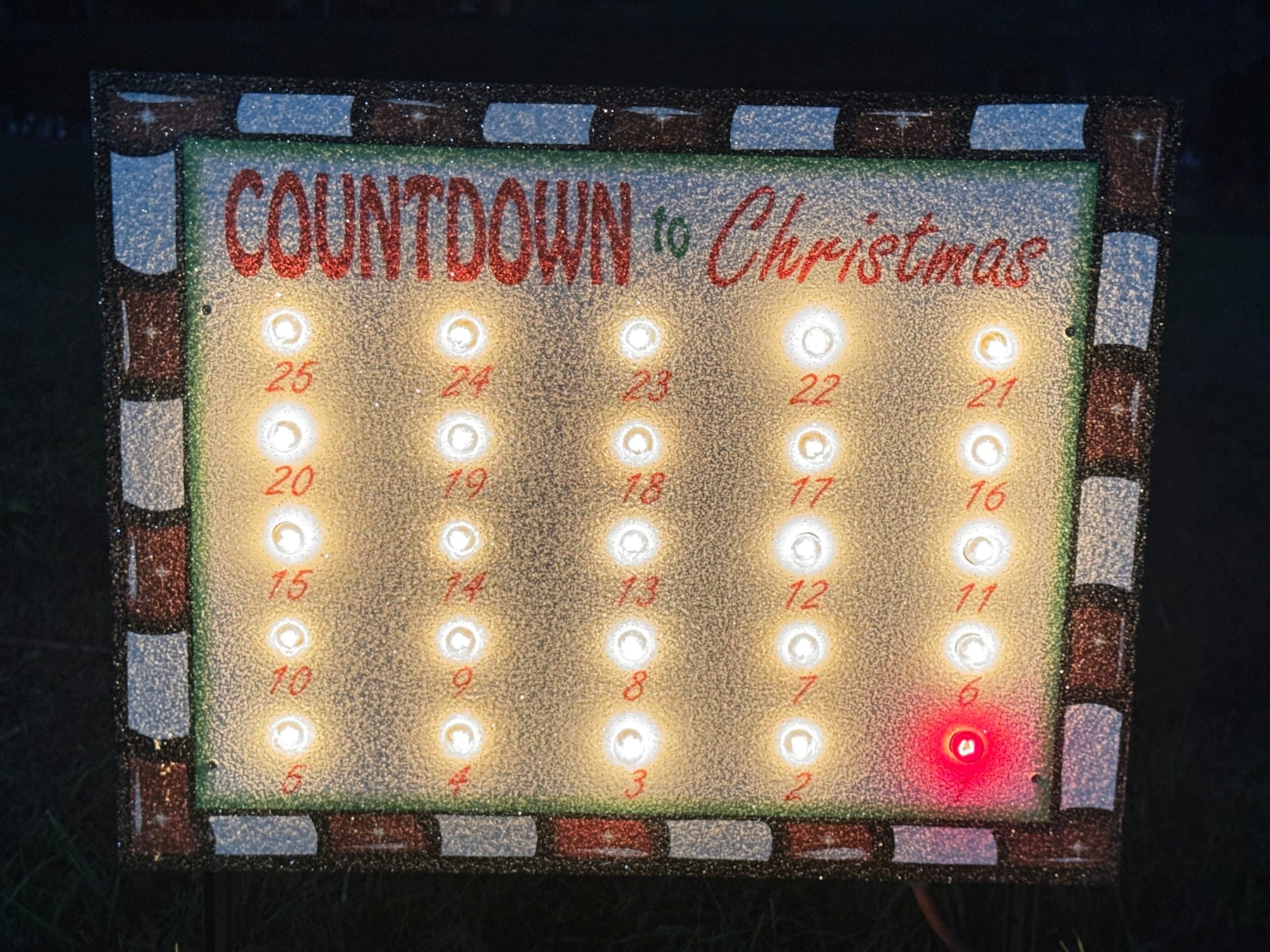 Add excitement to every December day with this interactive Christmas countdown sign! This bold and festive yard display features glittery candy canes, twinkling lights, and a countdown grid for marking off each day until Santa arrives.