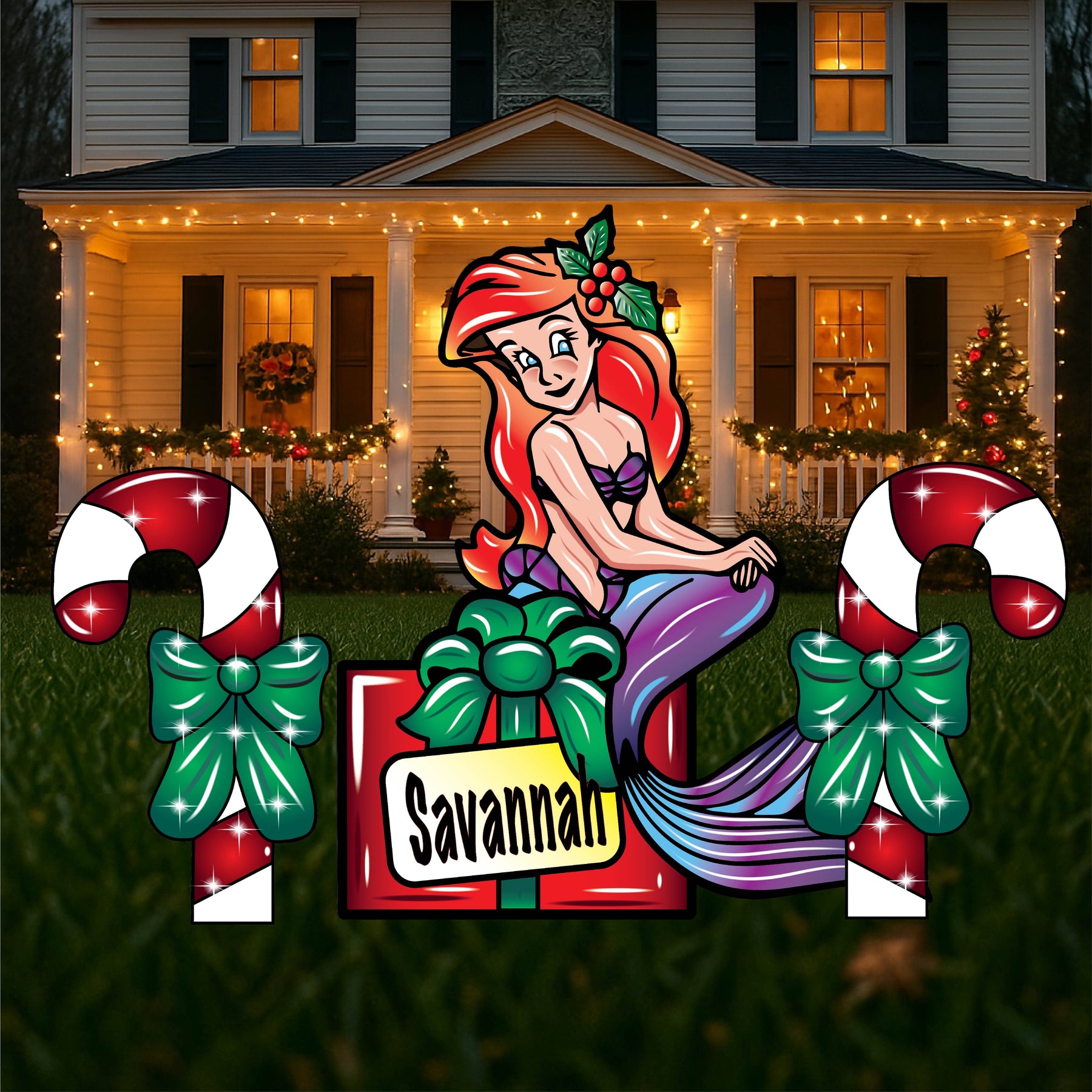 Custom Mermaid Christmas Yard Sign – Holiday Lawn Stakes for Kids