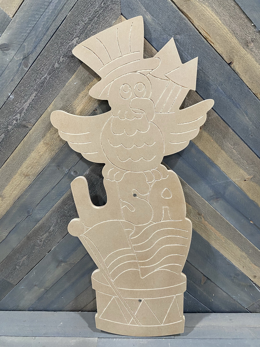 Get creative with this Patriotic Eagle Totem Pole DIY blank—perfect for adding your own red, white, and blue flair! Featuring a bold eagle design stacked in totem pole style, this blank is great for paint parties, holiday crafts, or unique outdoor decor.